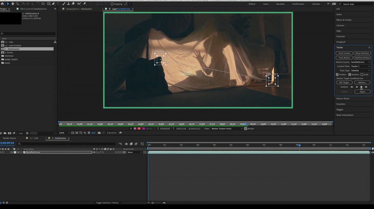 Another amazing way to use the tracking functionality in After Effects is to stabilize shaky footage. This comes in handy whenever you need your shot to look super smooth as opposed to shaky or handheld.
