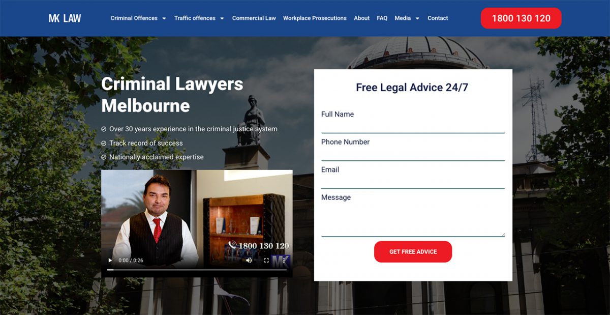 MK Law Firm uses a 30-second video to quickly connect with visitors by introducing the company founder. The brief surrounding text encourages plays, while the prominent sign-up form directs visitors to take the next step.