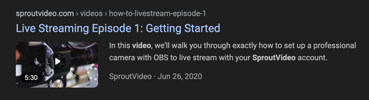 SproutVideo makes it easy to gain these benefits by automatically adding JSON-LD structured data to videos in most cases.